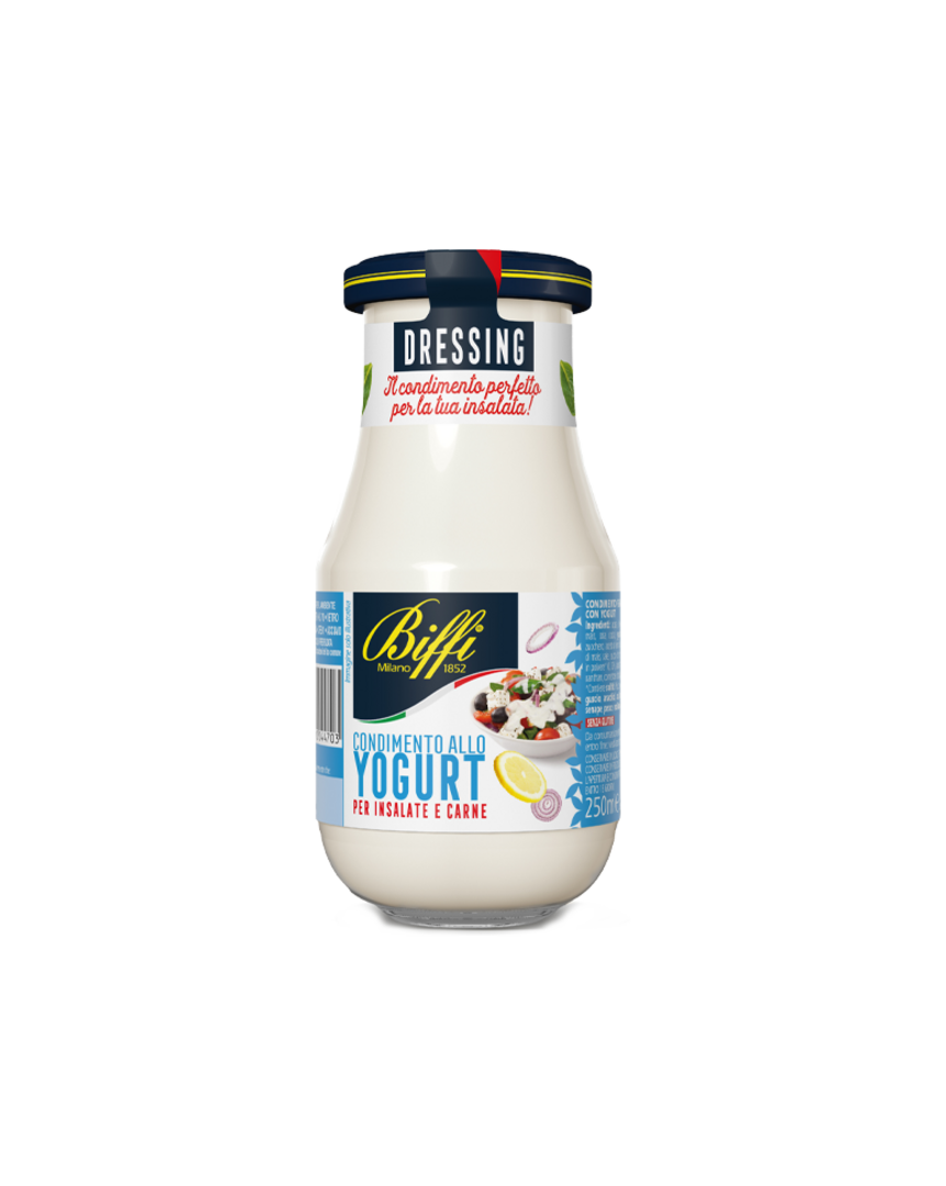 Esalta il gusto dei tuoi piatti con il Dressing allo Yogurt Biffi! E’ la scelta ideale per chi cerca un condimento fresco, leggero e saporito. La sua consistenza cremosa e il gusto delicato si abbinano perfettamente a insalate, carne e verdure.
